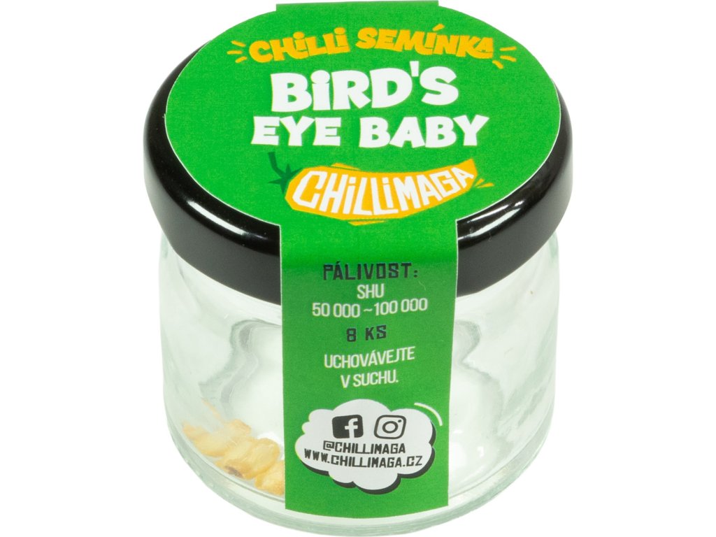 Bird’s Eye Baby je nejmenší odrůda, kterou pěstujeme – kompaktní keřík plný jasně červených plodů. Papričky jsou malé, kulaté, o velikosti přibližně 1 cm, s pálivostí 50 000–100 000 SHU. Přestože je tato odrůda drobná, nabídne výraznou chuť a spoustu plodů, vhodných pro přímou konzumaci, sušení nebo dekorativní účely.